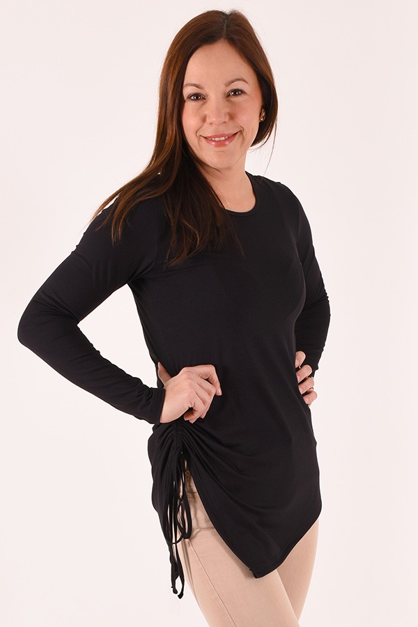 Asimetrična ženska majica z dolgimi rokavi z vrvico za reguliranje ob strani
